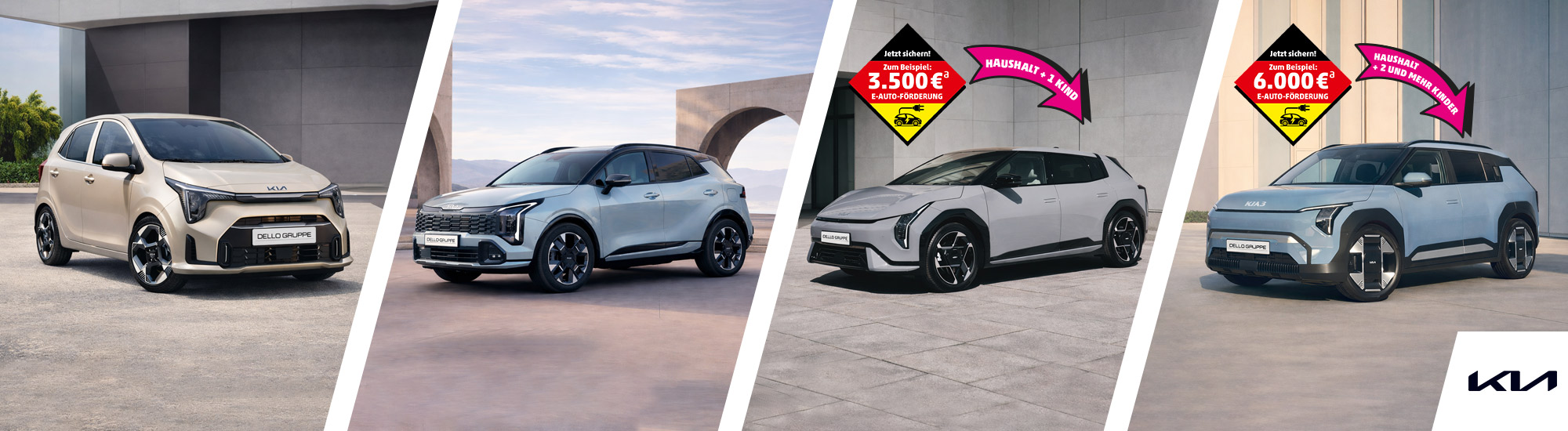 Entdecken Sie unsere aktuellen Kia Leasingangebote: den Kia Picanto als sofort verfügbares Stadtauto, den Kia Sportage als vielseitigen SUV sowie den neuen Kia EV4 und den Kia EV3 als moderne Elektrofahrzeuge. Alle Modelle jetzt ohne Anzahlung leasen.
